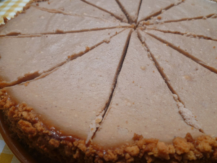 Contrairement à ce que l’on pourrait penser le goût de la crème de marron est assez prononcé et ce cheesecake n’est pas trop sucré.
