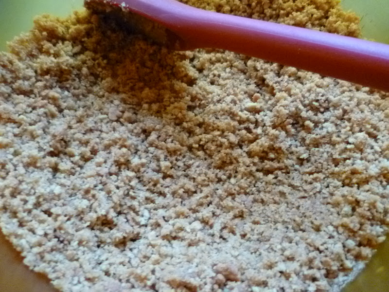 – Mixer les biscuits et ajouter le beurre fondu afin de lier le tout.