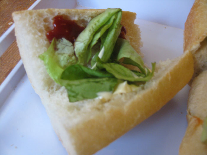 – préparer ensuite les pains en les coupant dans le sens de la longueur, badigeonner de sauce selon votre goût