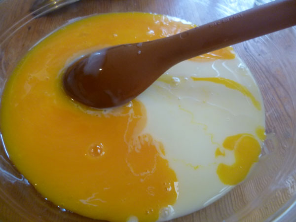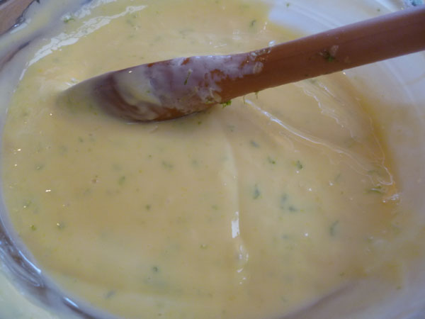 – pendant ce temps mélanger les jaunes d’oeuf, le lait concentré sucré et le jus de citron vert