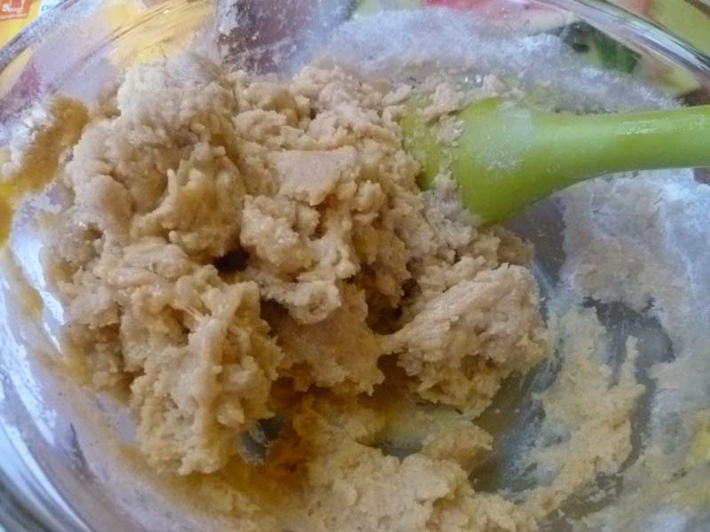 – ajouter le sucre glace et la poudre d’amande, mélangé bien avec une cuillère ou avec les mains !