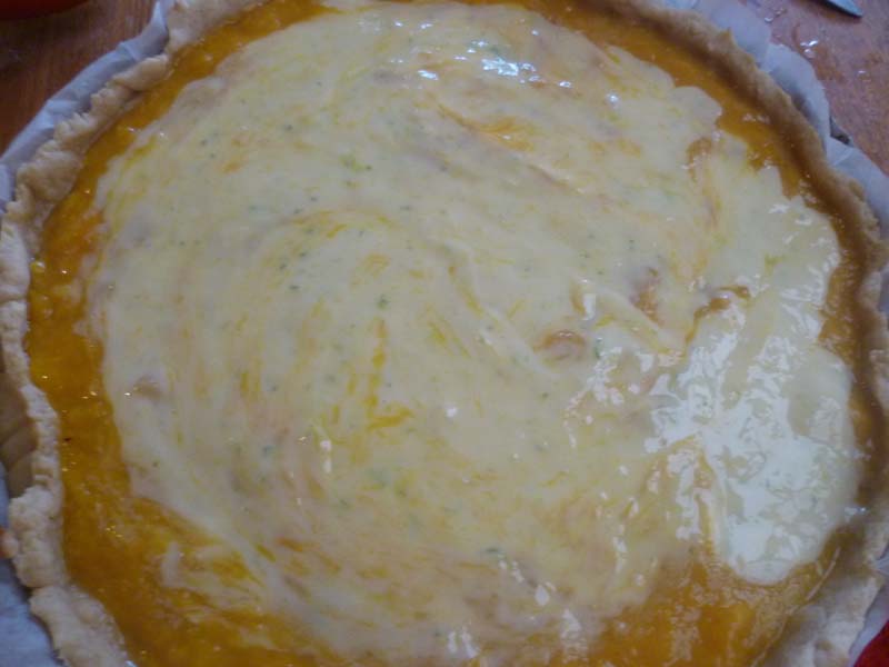 – verser la crème sur la tarte et remettre à cuire pendant 20 minutes en surveillant les 5 dernières minutes