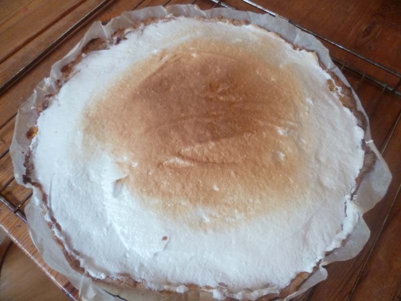 – verser la meringue sur la tarte puis mettre en route le grill de votre four pour faire roussir le dessus de la tarte pendant 5 minutes en surveillant là aussi de près !