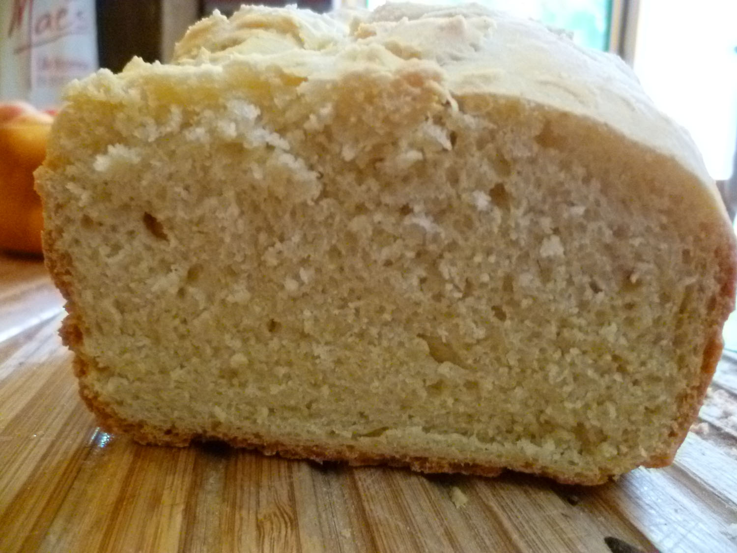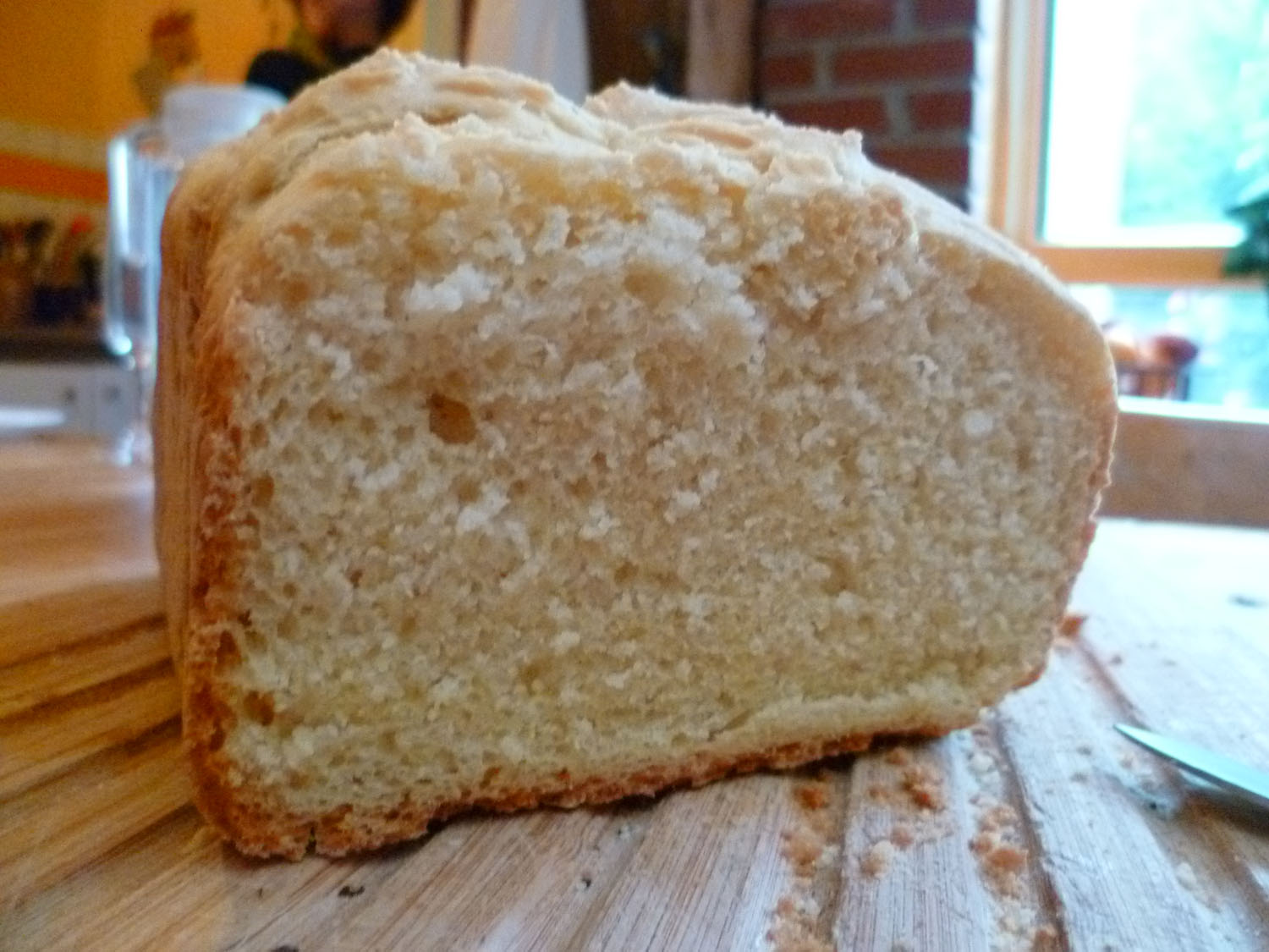 Oui mais sans recette c’est moins facile ! heureusement j’ai fouillé dans mon livre de pains reçu avec la machine il y a quelques années maintenant et il y avait une recette avec de la farine de maïs. Et le premier test est une réussite !