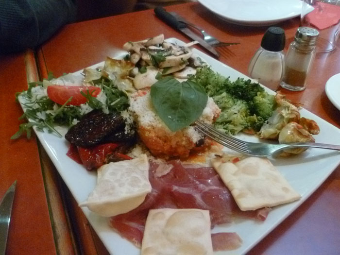 La carte est bien remplie mais je vous recommande de toujours débuter le repas par les antipastis à partager. Ils existent en deux formats: un petit et un grand. (La photo ci-dessous représente la petite version).