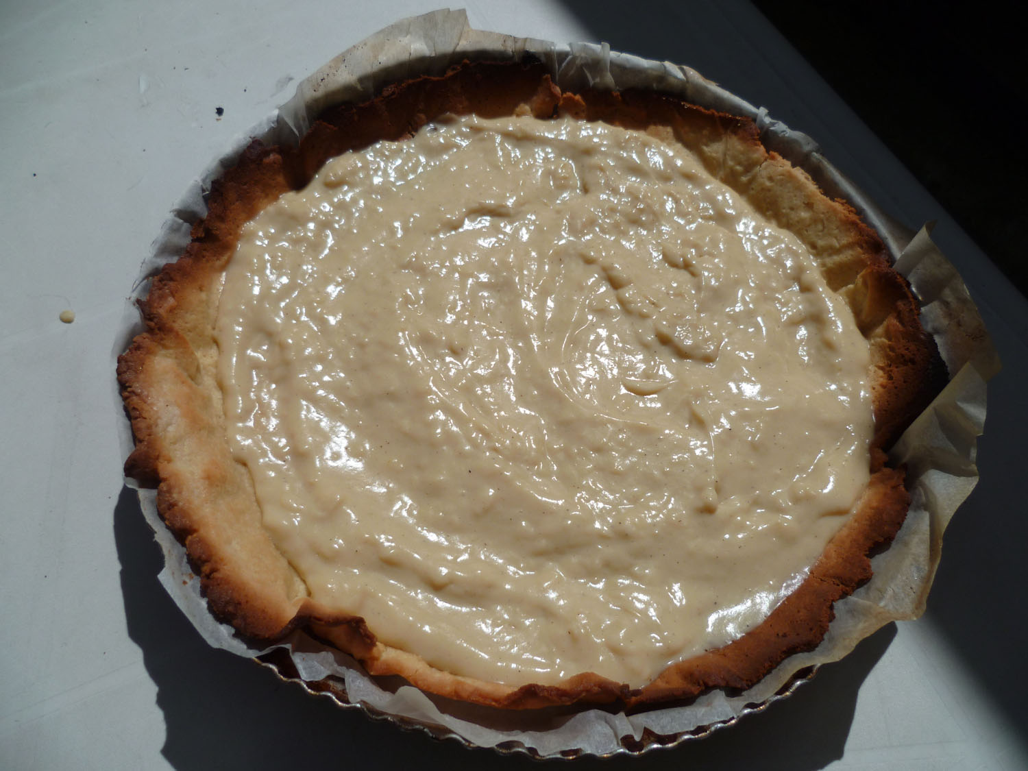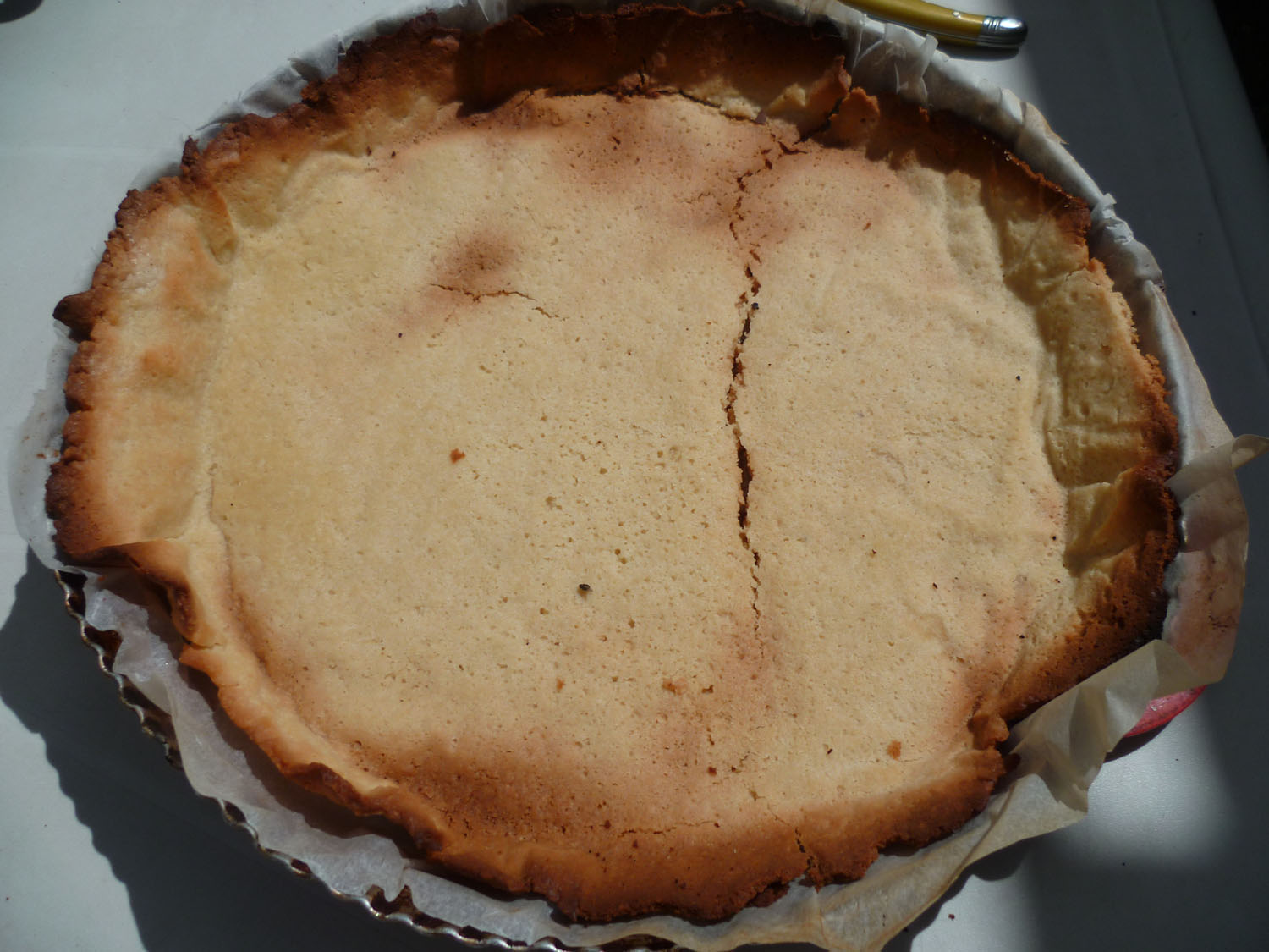 – faire cuire à blanc pendant 20 minutes (c’est à dire en ajoutant des haricots sec par dessus la pâte, moi je met un papier sulfurisé entre la pâte et les haricots quand même ! mais j’utilise toujours les mêmes haricots que je conserve dans une boite)