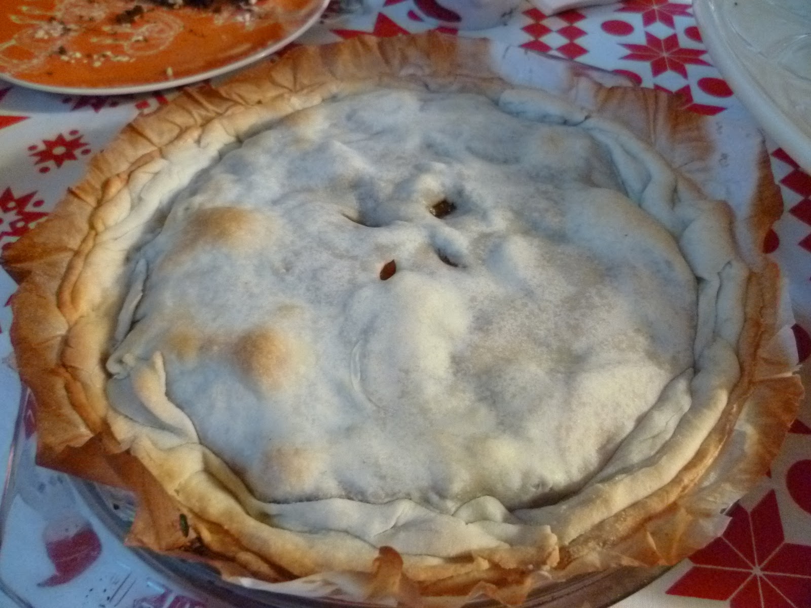 – refermer la tourte avec le couvercle de pâte , créer 4 petites fentes sur le dessus et faire cuire 30- 35 minutes au four .